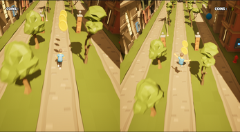 The game is a simple runner with a third-person perspective. Players automatically move forward, gradually accelerating, and must:
